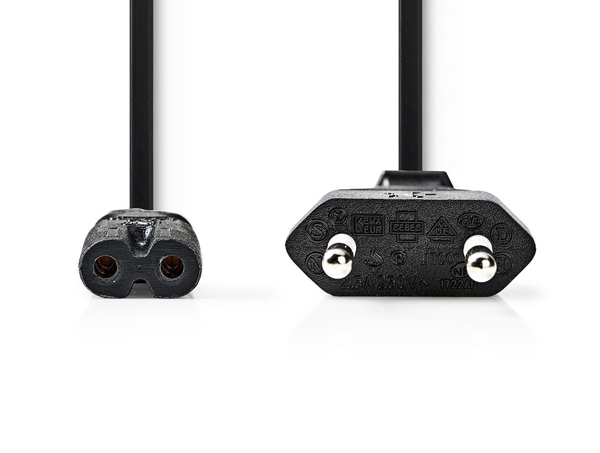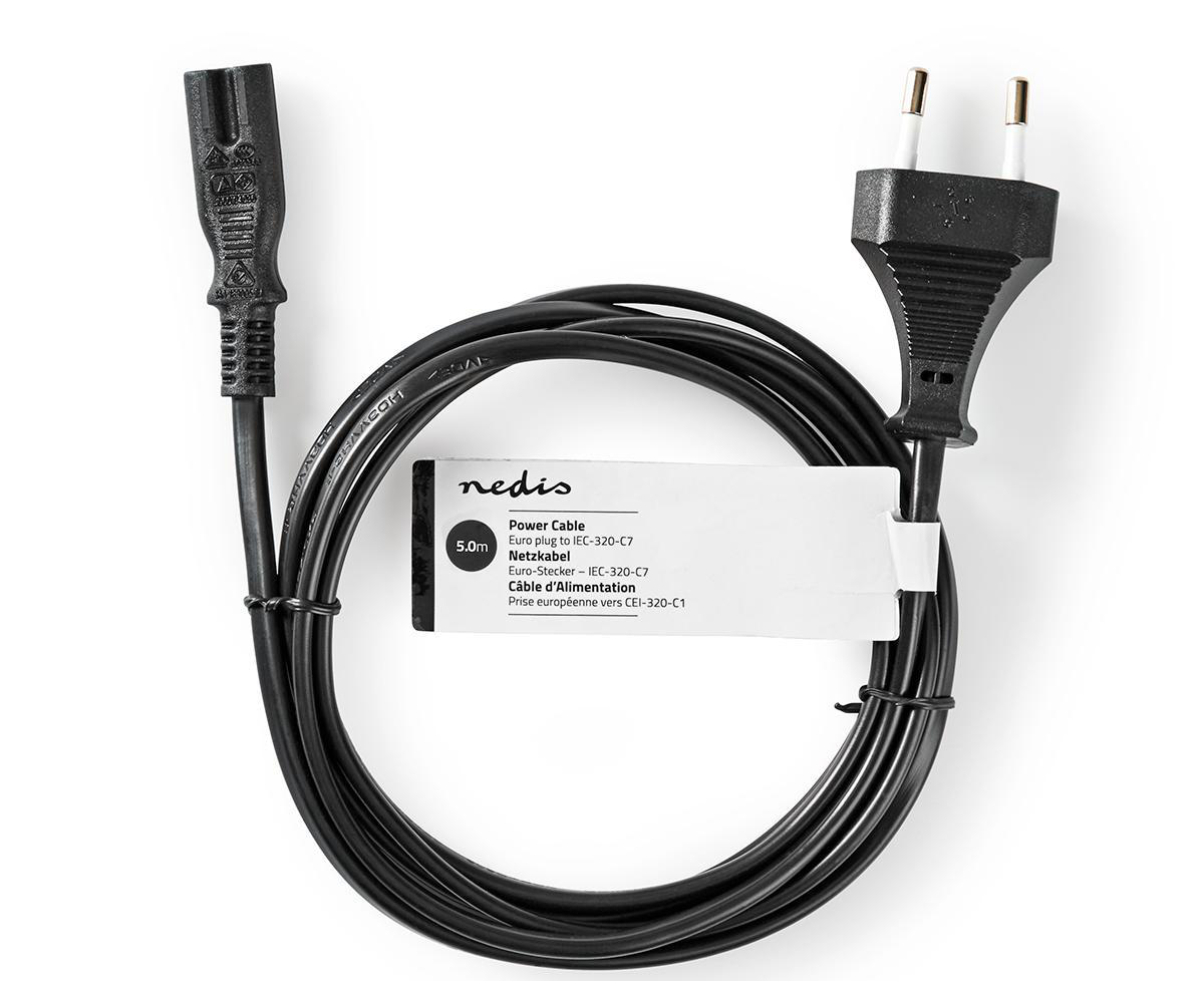 Napájecí kabel v černém provedení pro audio/video televizní přístroje, svítidla, napaječe, adaptéry apod. s koncovkou osmičky.