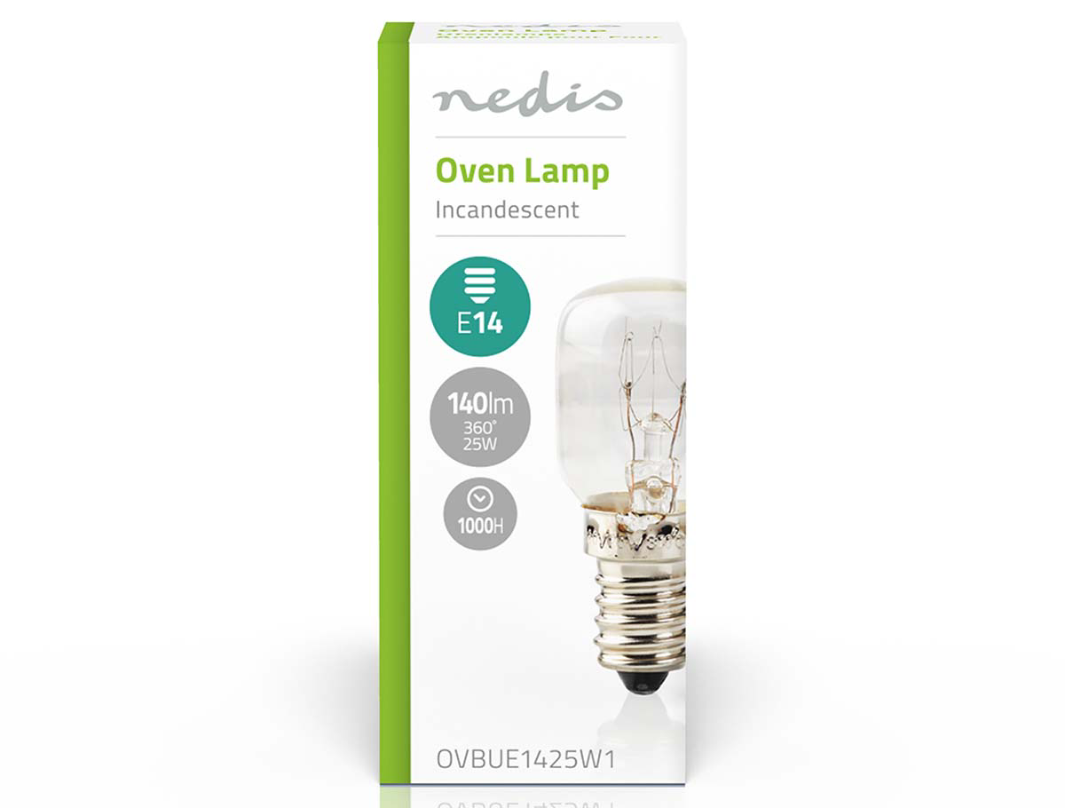 Náhradní 25W žárovka do trouby s objímkou E14. Průměrná životnost: 1 000 hodin.